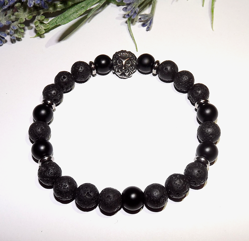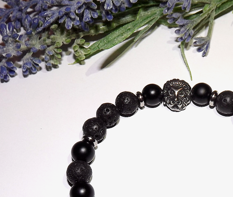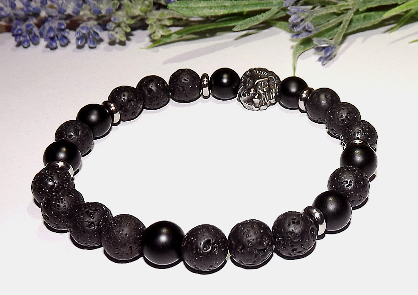 Az Oroszlánszív illatozó lávaköves karkötő 8mm-es fekete lávakőés matt ónix ásványgyöngyből készült rozsdamentes acél köztesekkel és oroszlánfejjel díszítve. Az Oroszlánszív iIlatozó karkötőim első darabjai között született, így kiemelt gondot fordítottam mind a tervezési, mind a kivitelezési folyamatokra.