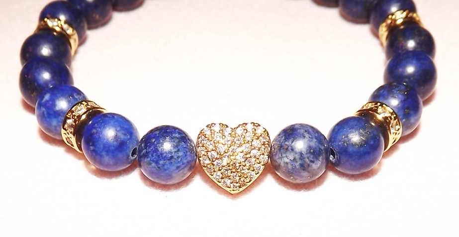 Szíves lapis lazuli karkötő